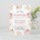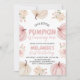 Celebre o seu pequeno abobrinha completando um ano com este doce convite de primeiro aniversário da abóbora rosa. Com abóboras em aquarela e flores cor de rosa suave, este charmoso design de outono é perfeito para a festa de aniversário de uma menina no outono. Personalize facilmente com o nome da criança, data e detalhes da festa para criar um convite único que define o tom para uma celebração aconchegante e festiva.