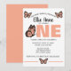 Celebre o grande marco da sua pequena borboleta com este convite de primeiro aniversário doce e moderno! Com borboletas em tons suaves de pêssego e rosa, tipografia lúdica e a adorável frase “Nosso Primeiro Ano Voou”, este design é perfeito para uma festa de aniversário de menina na primavera ou verão.