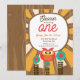 Celebre um precioso primeiro aniversário com este encantador convite de coruja da floresta. Com uma ilustração de coruja doce, detalhes florais divertidos e uma paleta de cores retrô aconchegante, este design é perfeito para uma celebração de aniversário de "Um". Ideal para festas temáticas de floresta, bosque ou animais, este convite funciona lindamente para meninos ou meninas e é totalmente personalizável com os detalhes da sua festa. Uma maneira calorosa e caprichosa de convidar amigos e familiares para celebrar um marco especial.