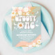 Celebre o dia especial do seu pequeno com este convite de aniversário "Groovy One" inspirado no estilo retrô. Com listras onduladas em tons pastéis, margaridas, sinais de paz, borboletas e flores sorridentes, este design dos anos 70 traz paz, amor e diversão para a sua festa. Perfeito para a celebração do primeiro aniversário, este convite colorido e boêmio define o tom para um evento alegre e caprichoso. Personalize com os detalhes da sua festa e faça o marco do seu filho ser inesquecível.