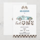 Celebre o grande dia do seu pequeno corredor com este convite de primeiro aniversário de carro de corrida! Com bandeiras xadrez, um carro de corrida azul vintage e letras ousadas "Fast ONE", este design captura perfeitamente o entusiasmo da pista de corrida. Ideal para festas de aniversário de meninos, inclui detalhes de evento personalizáveis e um tema de corrida divertido que os convidados vão adorar. Uma borda xadrez estilosa completa o visual, tornando-o uma escolha de destaque para uma celebração memorável do primeiro aniversário.