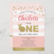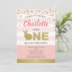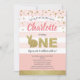 Convite de festa tema coelhinho fofo rosa e dourado para o 1º aniversário da bebê.