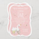 Convite de Primeiro Aniversário Elegante Cisne em Aquarela | Festa de 1º Aniversário da Menina