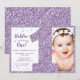 Convite de Primeiro Aniversário Roxo, Brilho Falso