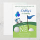 Celebre o marco do seu pequeno com este charmoso convite de primeiro aniversário temático de golfe. Com um carrinho de golfe divertido, balões e detalhes do campo, este design usa terminologia de golfe divertida para definir o tom de um dia de alegria. Perfeito para famílias que amam golfe, combina estilo esportivo com um toque festivo para tornar a festa do seu filho inesquecível. Personalize com os detalhes do seu evento e impressione os convidados com uma celebração única e perfeita.