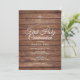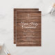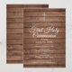 Um convite de primeiro comunhão rústico com detalhes personalizados especiais em tipografia elegante sobre um fundo de painéis de madeira. Concebido por Thisisnotme©