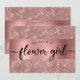 Peça aos seus amigos e familiares para fazerem parte do seu casamento com este cartão chic rosa dourado "Você Será Minha Menina de Flores" com folha de alumínio rosa dourado e fundo brilhante cintilante. Por favor, note que nenhuma folha de alumínio real será usada.