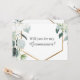 Este convite de proposta de padrinho moderno de eucalipto algodão branco é perfeito para o seu casamento moderno. Este design apresenta folhagens de eucalipto com tufos de algodão branco em um fundo branco e azul-marinho e caligrafia preta em um layout tradicional clássico moderno. Por favor, sinta-se à vontade para entrar em contato conosco com qualquer dúvida sobre este design.