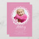 Bonito a rosa e enquadrado em vieiras brancas. Um convite à janela de fotos redondas para o aniversário da sua menina. (FP) O cartão é fácil de personalizar com sua redação, fonte, cor da fonte e escolha de seis tipos de papel. Não exatamente o que você está procurando? Todos os nossos produtos podem ser personalizados para atender às suas necessidades sem custos adicionais. Basta entrar em contato conosco em askcottonlamb@gmail.com Coordenando os produtos disponíveis:
