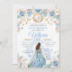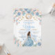 Entre num conto de fadas com este encantador Convite de Quinceañera temático da Cinderela! Com um vestido de princesa de sonho, um castelo cintilante ao fundo, um relógio elegante marcando meia-noite e borboletas douradas esvoaçantes, este design captura a magia da sua celebração única.