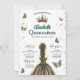 Convide seus convidados para uma noite de elegância real com este convite personalizável de Quinceañera Verde Esmeralda. Com uma paleta sofisticada de verde floresta profundo e confetes dourados cintilantes, este design é perfeito para uma celebração majestosa de 15 anos.