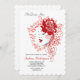 Um design dramático com o rosto de uma garota e uma rosa vermelha aberta em seu cabelo. O batom vermelho combina com a cor da rosa. Dryicons.com.