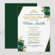 Este convite de quinceañera verde esmeralda e dourado apresenta um design luxuoso com detalhes elegantes, perfeito para celebrar um marco único na vida. Uma escolha atemporal para uma celebração elegante e inesquecível.