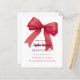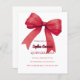 Um fundo branco, decorado com um grande arco vermelho. Personalize e adicione um nome e detalhes da parte. 1 folha = 1 convite impresso de borda a borda.
