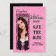Convite de Quinceanera com Estampa de Onça Rosa, Jóias Brilhantes em Topázio Rosa e Tiara para celebrar o 15º aniversário da encantadora jovem. Por favor, note que o cartão não possui enfeites que possam ser sentidos ao toque.