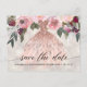 Postais de convite de Quinceañera com flores modernas. Design com vestido em dourado rosado, elementos florais em um fundo pérola brilhante. Personalize com sua foto e detalhes no verso.