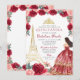 Convite de Quinceañera Torre Eiffel Paris Coroa de Ouro Rosa Vermelho
