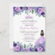 Convite para Quinceanera Floral Puro de Tiara Watercolor Rosa. Uma adorável cor d'água, rosas roxas e flores misturadas com folhas verdes e folhagem, define a cena para esse tema da festa Quinceañera. Um olhar simples, mas caprichoso, com uma variedade de matizes roxos. Uma mistura de fontes serif clássicas e uma bela tipografia de script tornam isto elegante e divertido. Uma princesa brilhante púrpura tiara brilha em cima e atrás, assim como uma garota adorável com um vestido brilhante púrpura. Você pode mudar todas as cores da fonte para torná-la mais colorida ou vibrante se quiser. Você também pode mudar o plano de fundo e a cor do convite para qualquer coisa que quiser. Disponível como um convite impresso ou como um convite digital para download que você pode enviar por e-mail ou que foi impresso localmente!