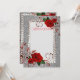 Este convite criado em papel de qualidade tem impressão com brilho prateado na frente com uma borda com aparência de falsa pedra e rosas vermelhas com impressão de floreios vermelhos. Muito espaço para você personalizar e adicionar seu texto. O verso tem fundo com brilho prateado com a mesma impressão de rosas vermelhas grandes e floreios e acabamento com falsa pedra e uma foto de amostra para você alterar para a sua. Personalize ou compre como mostrado para um toque pessoal.