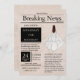Belo jornal em estilo antigo, "Notícias de Última Hora", edição especial com modelos personalizáveis com uma garota em vestido formal. Seu lindo vestido em aquarela é de cor branca prateada com detalhes de brilho falso.