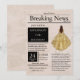 Belo jornal em estilo antigo, "Notícias de Última Hora", edição especial com modelos personalizáveis com uma garota em vestido de gala. Seu lindo vestido em aquarela é de cor dourada com detalhes de brilho falso.