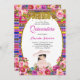 Convites de Quinze Anos com cores pêssego, dourado rosa brilhante e rosa bege.