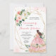 Convite de Quinze Anos Princesa Rosa Bege com Floral Geométrico Dourado Elegante