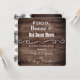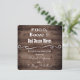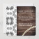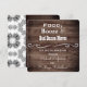 Um belo convite de recepção de casamento. Uma cerca rústica de madeira e um padrão floral vintage cinza e branco com pérolas. Na frente está a saudação, "Comida, Bebida e Movimentos de Dança Ruins". Adicione o nome do noivo e da noiva. Personalização no verso, linha por linha.