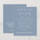 Elegante elopemento azul empoeirado, ou anúncio privado de casamento e convite de festas de recepção de casamento ou celebração. A frente apresenta "Felizmente Nunca Depois da Festa" em uma mistura de uma simples tipografia branca e um roteiro branco-na moda com pontos altos; personalize seu anúncio e convite e adicione seus nomes em um roteiro semelhante a assinatura. No verso, adicione seu endereço de site de casamento para criar um código QR para os convidados pesquisarem para acompanhar suas fotos de casamento, todos os detalhes e para RSVP on-line, e adicione seus primeiros nomes e datas de casamento e recepção.