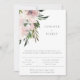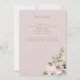 Design de tipografia chique e simples, convite de recepção de casamento que apresenta buquês florais em aquarela em tons de rosa velho com folhagem fluindo. Verso do cartão apresenta espaço de modelo para detalhes adicionais.