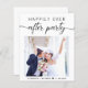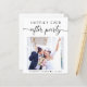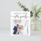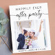 Convite econômico para casamento íntimo moderno ou anúncio de casamento privado e recepção. A frente apresenta sua foto, "Festa Feliz para Sempre" em uma mistura de tipografia simples e um script moderno com floreios e seus primeiros nomes e data do casamento. No verso, personalize o anúncio do seu casamento e convite para a recepção, insira o endereço do site do seu casamento para criar um código QR para que os convidados leiam e vejam suas fotos de casamento, todos os detalhes e respondam online, e adicione seus nomes em um script semelhante a uma assinatura.