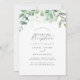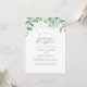 Este convite de recepção de casamento com elegante folhagem é perfeito para uma festa simples após a fuga romântica. O design moderno e elegante apresenta uma arranjo botânico natural de eucalipto, folhas e plantas com um sutil acento de lavagem de aquarela verde menta. Os cartões de RSVP são vendidos separadamente, ou você pode adicionar informações de RSVP no verso do cartão.