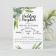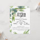 Convite de recepção de casamento com dólar pintado de prata e galhos de eucalipto de salgueiro florido. Personalize o estilo, cor e tamanho da fonte do texto. A cor do fundo também pode ser personalizada para combinar com o seu evento.