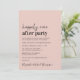Anúncio de casamento cor-de-rosa minimalista moderno e convite de recepção pós-casamento. A frente apresenta "Festa Feliz para Sempre" em uma mistura de uma fonte contemporânea e tipografia ousada e moderna. Personalize sua mensagem e convite com mais detalhes e adicione seus nomes em uma fonte com aparência de assinatura. O verso apresenta sua foto de casamento, seus primeiros nomes e data do casamento.