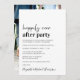 Anúncio de casamento minimalista moderno e convite de recepção ou festa de celebração pós-casamento. A frente apresenta "Festa Feliz para Sempre" em uma mistura de escrita contemporânea e tipografia ousada e moderna. Personalize sua mensagem e convite em mais detalhes e adicione seus nomes em uma escrita semelhante a uma assinatura. O verso apresenta sua foto de casamento, seus primeiros nomes e data de casamento.