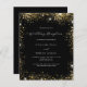 Um convite de recepção de casamento moderno e elegante. Fundo preto decorado com brilhos de purpurina dourada falsa. Personalize e adicione seus nomes e detalhes do casamento. Letras coloridas de branco.