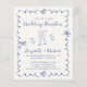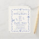 Convite de orçamento para recepção de casamento com creme claro e caprichoso com uma moldura ondulada em azul francês adornada com laços, ilustrações desenhadas à mão de corações e taças de champanhe, e "Recepção de Casamento" e os nomes da noiva e do noivo em um script azul divertido e alegre. NOTA: Este papel econômico é fino, semelhante em peso ao papel fotográfico - uma versão com papel-cartão tradicional 5x7 maior e mais grosso também está disponível (envie-nos uma mensagem para o link).