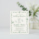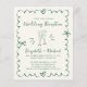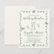 Convite de casamento inspirado no estilo retrô com moldura ondulada verde adornada com laços coquete, ilustrações caprichosas desenhadas à mão de corações e taças de champanhe, e "Recepção de Casamento" e os nomes dos noivos em uma fonte verde divertida e alegre. NOTA: Este papel econômico é fino, semelhante em peso ao papel fotográfico - uma versão mais grossa e tradicional de 5x7 em papel cartão também está disponível (envie-nos uma mensagem para o link).