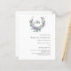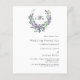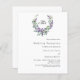 Um fundo branco decorado com uma flor de lavanda e uma coroa verde de eucalipto, crista. Personalize e seu monograma, nomes e detalhes. 1 folha = 1 convite impresso de borda a borda.
