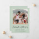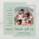 Fuga / convite de casamento pequeno com anúncio em verde-sage e convite para recepção ou festa de celebração pós-casamento. A frente apresenta sua foto, "Celebre Conosco" em um script sofisticado e seus primeiros nomes e data e local do casamento em uma tipografia moderna simples. No verso, você pode personalizar o anúncio do casamento ou fuga romântica com mais detalhes, adicionar um convite para recepção ou festa e assinar seus nomes de casados em uma fonte com aparência de assinatura.
