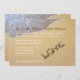 Convite de recepção de casamento com tema de praia elegante, perfeito para o casal que se casa em segredo ou em um casamento de destino. O fundo do convite é feito usando uma fotografia de uma praia arenosa, com a palavra amor escrita na areia. Personalize o texto para atender às suas necessidades.