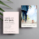 Convite de recepção e anúncio de casamento cor-de-rosa minimalista moderno. A frente apresenta "Festa Feliz para Sempre" em uma mistura de escrita contemporânea e tipografia ousada e moderna. Personalize sua mensagem e convite e adicione seus nomes em uma escrita semelhante a uma assinatura. O verso apresenta sua foto de casamento, seus primeiros nomes e data de casamento.