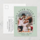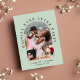 Convite de casamento moderno em verde sage para anúncio de casamento íntimo ou privado e cartão postal de recepção. A frente apresenta a foto do seu dia de casamento em uma moldura de arco e "Festa Feliz para Sempre" em tipografia elegante. Adicione seus primeiros nomes e data de casamento. No verso, personalize sua mensagem e adicione seus nomes em uma caligrafia semelhante a uma assinatura.
