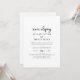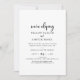 Este convite de recepção de casamento rústico e fuga é perfeito para uma festa no campo após a fuga. O design simples e moderno em preto e branco apresenta uma tipografia única e caprichosa de caligrafia manuscrita com um estilo boho minimalista contemporâneo. Personalizável em qualquer cor. Mantenha o design minimalista e simples, como está, ou personalize-o adicionando seus próprios gráficos e ilustrações. Cartões de RSVP são vendidos separadamente, ou você pode adicionar informações de RSVP no verso do cartão.