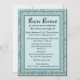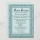 Papel de parede floral vintage azul-esverdeado em tamanhos graduados margeia a área de texto aqua pálido deste convite personalizável. O texto de exemplo é para uma recepção pós-casamento, mas pode ser personalizado para festas de aniversário, aniversários ou qualquer evento especial. O texto "Você está convidado" é uma imagem e pode ser editado, excluído (-) para adicionar seu próprio texto personalizado, se desejar. Personalize com as informações do seu evento, escolha seu próprio estilo de fonte, tamanho e cor. Adicione mais texto no verso, se necessário.