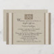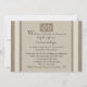 Este convite de recepção pós-casamento apresenta uma aparência de papel pergaminho como ponto focal com uma inserção de aniagem que contém o monograma do seu sobrenome e seus monogramas iniciais em ambos os lados. Em ambos os lados da aparência de papel pergaminho há uma aniagem bege com uma faixa mais clara passando pela aniagem. Todos os detalhes da sua recepção pós-casamento podem ser personalizados neste design, incluindo quando e onde você se casou. Uma maneira maravilhosa de convidar seus convidados para uma recepção pós-casamento. Copyright henishouseofpaper