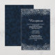 Convite de recepção de casamento com glitter de stardust branco e azul marinho.