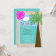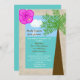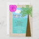 Você se casou em um cenário tropical e gostaria de celebrar com uma recepção pós-casamento com tema tropical ou de praia? Este convite de recepção pós-casamento pode ser o convite ideal para você. Com uma hibisco no canto superior direito em rosa brilhante, o design é bordeado por algo que parece areia com uma palmeira à direita. O nome da noiva e do noivo aparecem no céu e os detalhes da recepção pós-casamento aparecem no oceano. Uma ótima maneira de convidar seus convidados para uma recepção pós-casamento após um casamento de destino. Copyright henishouseofpaper