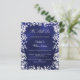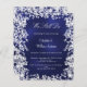 Um convite de renovação de votos moderno e elegante. Fundo azul marinho decorado com flocos de neve. A cor azul é irregular. Personalize e adicione seus nomes e detalhes da festa. Letras de cor branca.