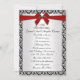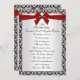 Convite de renovação de votos de aniversário de 25 anos. Composição de imagem e ilustração para convite de aniversário de casamento formal e elegante em fundo preto e branco com design Damask e fita de cetim vermelho. O texto é totalmente personalizável. Adicione suas informações ou altere completamente. Selecione uma fonte e cor de fonte diferentes. O modelo pode ser usado para qualquer ocasião especial. Basta alterar o texto para atender às suas necessidades. Se você escolher um tamanho de convite diferente, certifique-se de clicar na caixa para garantir que a imagem seja formatada para preencher o modelo. Não há enfeites separados neste design impresso e, portanto, não há necessidade de postagem extra.